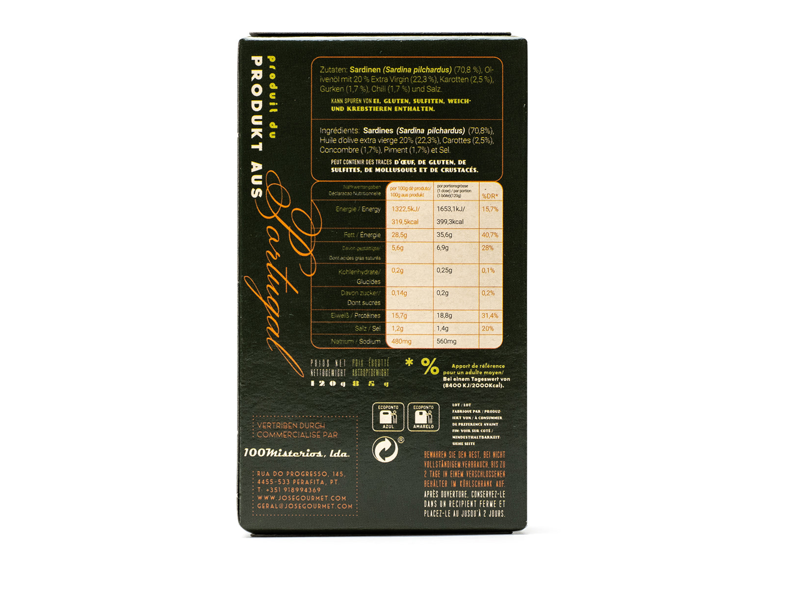 José Sardinen in scharfem Olivenöl sind nicht nur schmackhaft, sondern auch gesund. 120 g enthalten Omega-3-Fettsäuren, eine natürliche Quelle Vitamine, Mineralstoffe und Ballaststoffe. Konserviert in Olivenöl, schützen sie Zellen und trägt zu eine ausgewogene Ernährung bei.