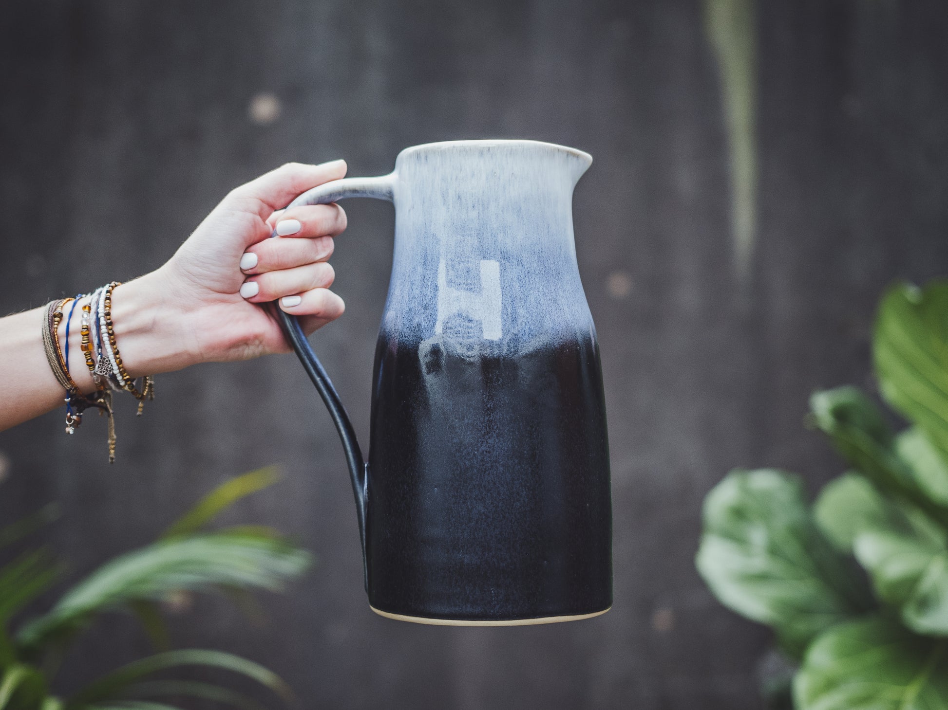 Der Profundezas Krug (2 Liter) überzeugt mit zeitlosem Design und handgefertigter Qualität aus Portugal. Seine schlanke Form liegt angenehm in der Hand und sorgt für müheloses Einschenken – ideal für Alltag und besondere Anlässe. Mit seiner eleganten Linienführung fügt sich der Krug harmonisch in jedes Zuhause ein. Das grosszügige Volumen eignet sich perfekt, um Gäste stilvoll mit Getränken zu verwöhnen. Auch als Vase für frische oder getrocknete Blumen ist er ein echter Blickfang.