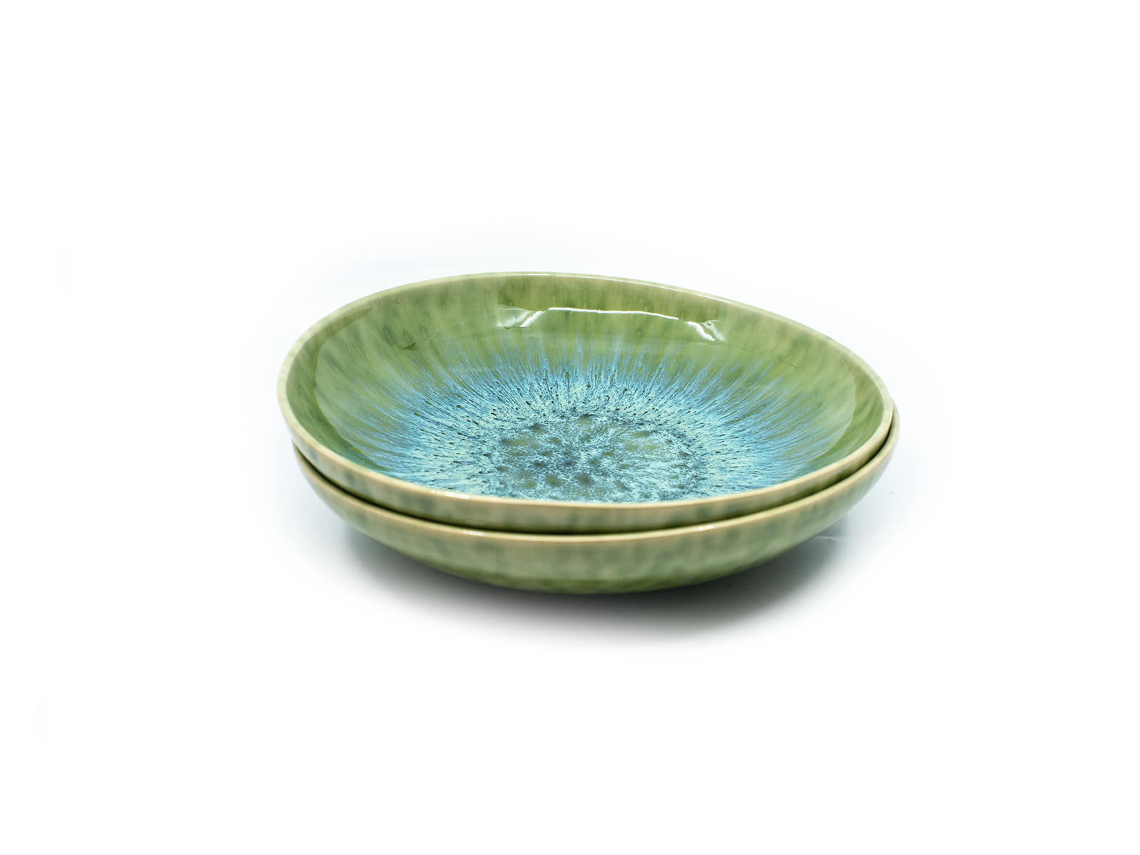 Die handgefertigte Vulcão Verde Pastaschale vereint portugiesisches Handwerk mit natürlicher Schönheit. Der lebendige grüne Farbverlauf, inspiriert von den Landschaften Portugals, macht jede Schale zu einem Unikat. Ideal für Pasta, Bowls oder herzhafte Gerichte – die hochwertige Keramik sorgt für eine stilvolle Präsentation und bringt mediterranes Flair auf den Tisch.