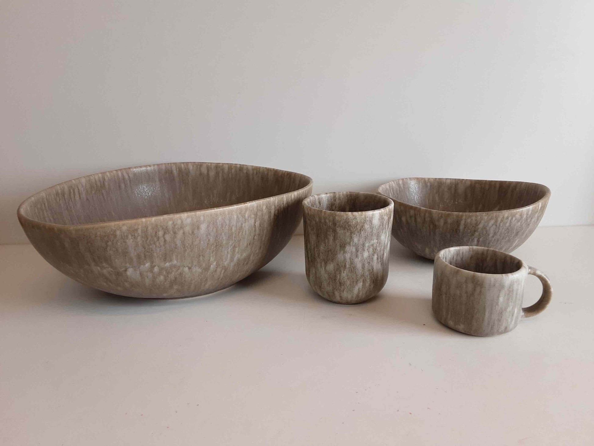 Die grosse Barrento Schale vereint sanfte, geschwungene Linien mit einer reaktiven Glasur in natürlichem Taupe. Teil der Barrento Kollektion steht sie für die Rückbesinnung auf das Ursprüngliche – auf Ton, Erde und echtes Handwerk. Jede Schale ist ein handgefertigtes Unikat. Ob für Salate, Pasta oder als dekoratives Element, diese Schale bringt die ruhige Kraft traditioneller Keramikkunst auf den Tisch.
