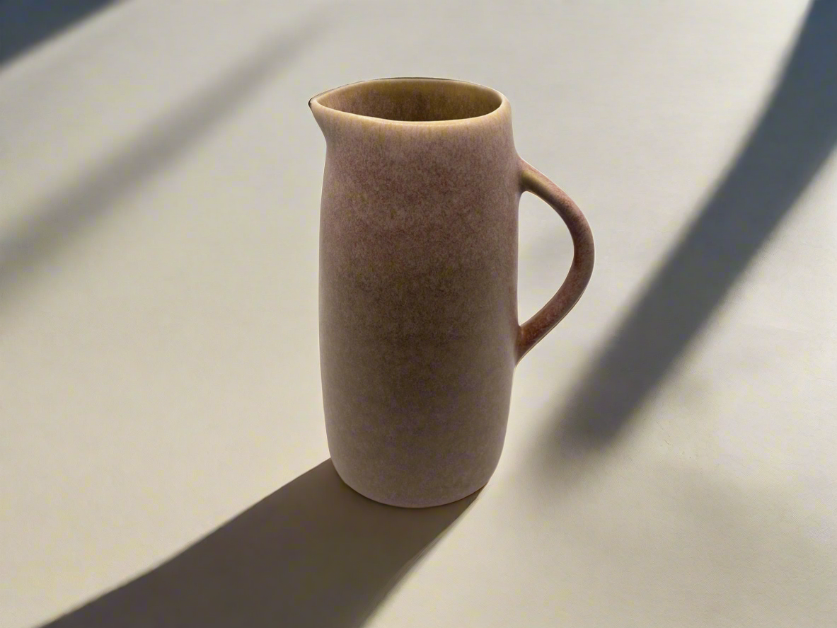 Der Rocha de Ouro Krug verbindet funktionales Design mit mediterraner Ästhetik. Die matte, reaktive Glasur in zartem Rosa-Beige verleiht jedem Krug einen individuellen Charakter und eine warme, natürliche Ausstrahlung. Mit einem Fassungsvermögen von 1,2 Litern eignet er sich ideal für Wasser, Saft oder selbstgemachte Limonade – ebenso auch als stilvolle Vase für frische Blumen.