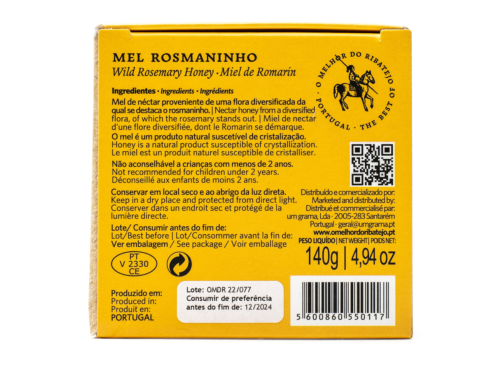 L'ingrédient principal du miel de romarin Um Grama est un miel de qualité supérieure, récolté par les abeilles dans les sources de nectar des fleurs de romarin. Le romarin confère au miel une agréable amertume et une nuance terreuse qui lui donne une profondeur particulière.
